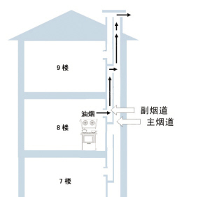 每戶的煙道開口,也就是逆止閥的位置,應(yīng)該比主煙道上的低,因?yàn)闊煔舛际峭狭鲃?dòng)的,所以主煙道的氣味很少會(huì)進(jìn)入支煙道里面,也就不會(huì)出現(xiàn)串味的現(xiàn)象了。